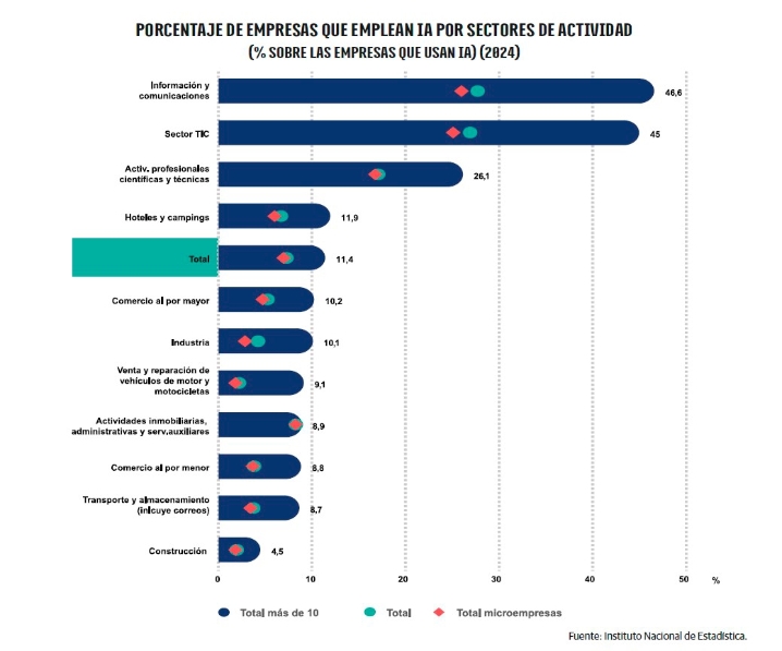 El informe “Indicadores de uso de inteligencia artificial en las empresas españolas” (Edición 2025. Datos 2024), editado por el Observatorio Nacional de Tecnología y Sociedad de la ...