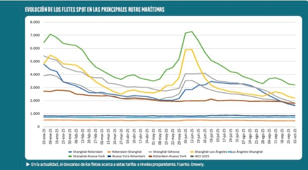 Según Sánchez, esta situación no tiene visos de cambiar, al menos hasta diciembre, cuando los cargadores comiencen a aumentar sus peticiones de espacios de carga de cara a la celebración del Año Nuevo Chino en febrero de 2026.