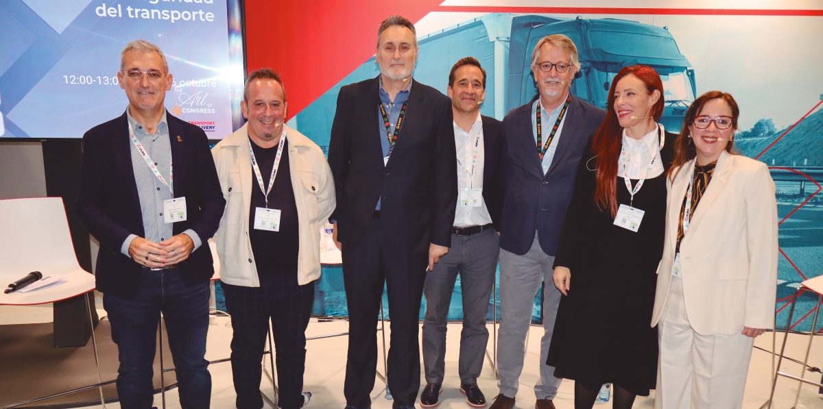 De izda. a dcha, Jordi Espín (Transprime), Ricardo Lucientes (Gesprolog), Alfredo Noya (Trimble), Fernando Viñuales (ACF Innove), Juan Pablo Palomares (Consulta), Miriam Arribas (CargoOn) y Mariuxi Chávez (Orbcomm). Foto M.J.