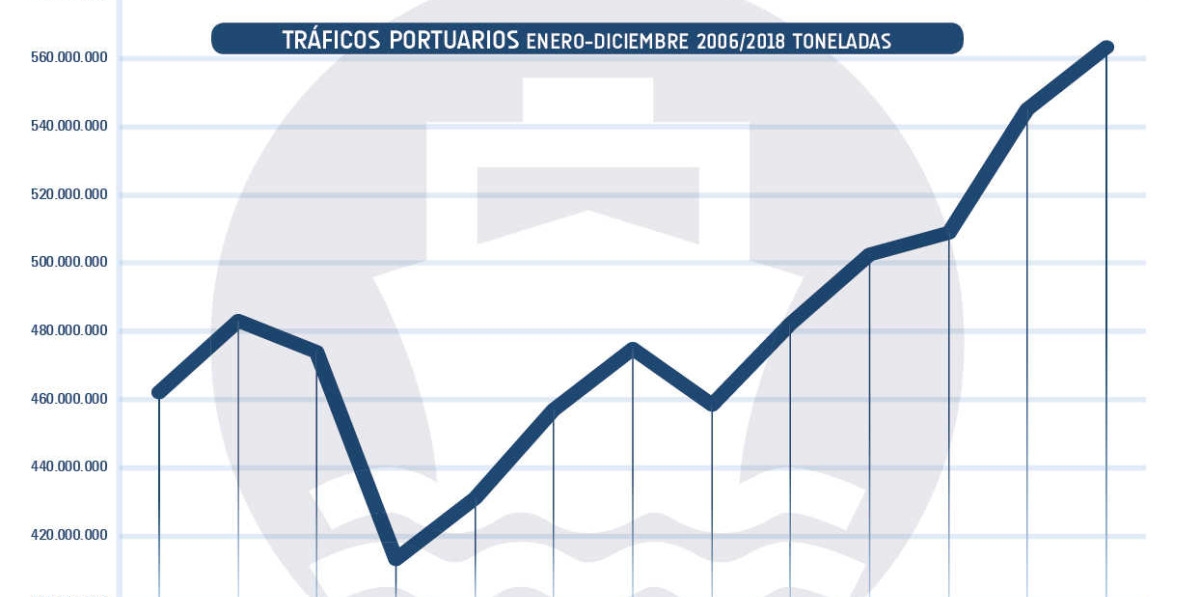 Esto supuso que la mercancía general representó en 2018 el 47,47% del tráfico total, 1,1 puntos porcentuales más que en 2017, cuando el peso de la mercancía general había sido del 46,3%.