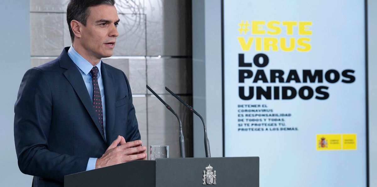 El presidente del Gobierno, Pedro Sánchez, ha anunciado, tras su reunión con los presidentes de los Gobiernos Autonómicos, la asunción de nuevas medidas para frenar la expansión del Covid-19. Entre éstas medidas, el Ejecutivo Central ha decidido ampliar dos semanas más el Estado de Alarma -una medida que será ratificada oficialmente durante el próximo Consejo de Ministros del martes- y la restricción de los viajes internacionales.