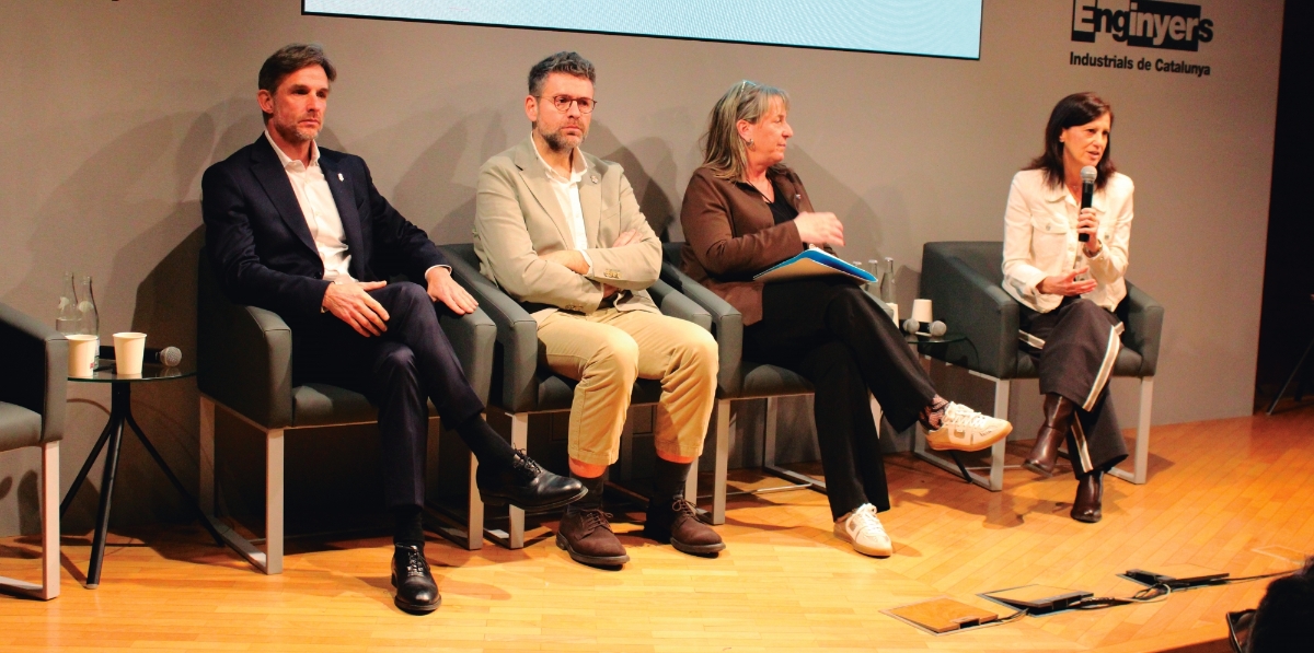 Xavi Paz, alcalde de Molins de Rei; Josep Lluís Santamaria, alcalde de Riudellots de la Selva; Judith Vidal, alcaldesa de la Bisbal del Penedés; y Sílvia Solanellas, moderadora. Foto M.V.