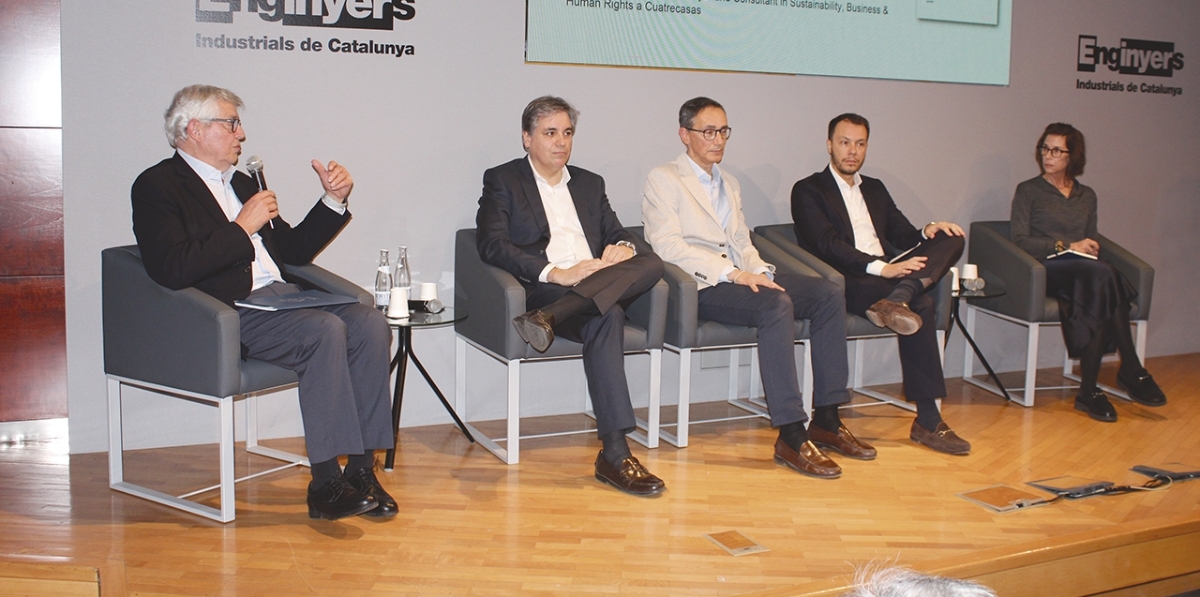 Joan Josep Vallvé, presidente de la Comisión de Logística del Col·legi d’Enginyers; Enrique Escribano, Associate -Industrial & Logistic en Cushman & Wakefield; Josep Torrella, director de Desarrollo de Torrella Enginyeria - Arquitectura; •Delfí López , director de ingeniería en Onilsa; y Elisabeht de Nadal, Lawyer and Consultant in Sustainability, Business & Human Rights en Cuatrecasas. Foto M.V.