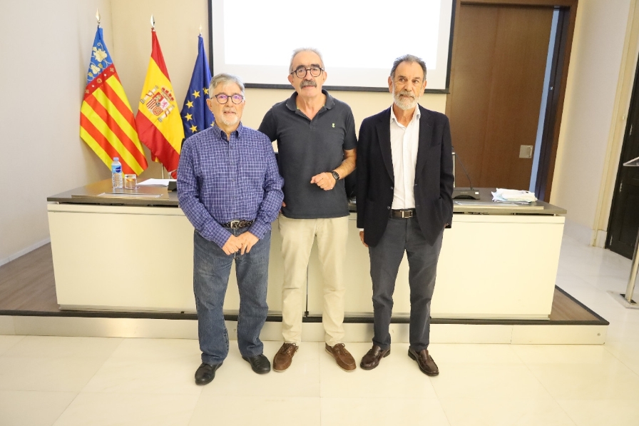 José Miguel Peris, presidente de la Fundación Laboral de Tráfico Exterior; Miguel Ángel García, sociólogo y uno de los autores de “La situación laboral de la mujer en tráfico exterior”; y Emilio Guardiola, presidente de la Fundación Laboral de Tráfico Exterior. Foto R. T.