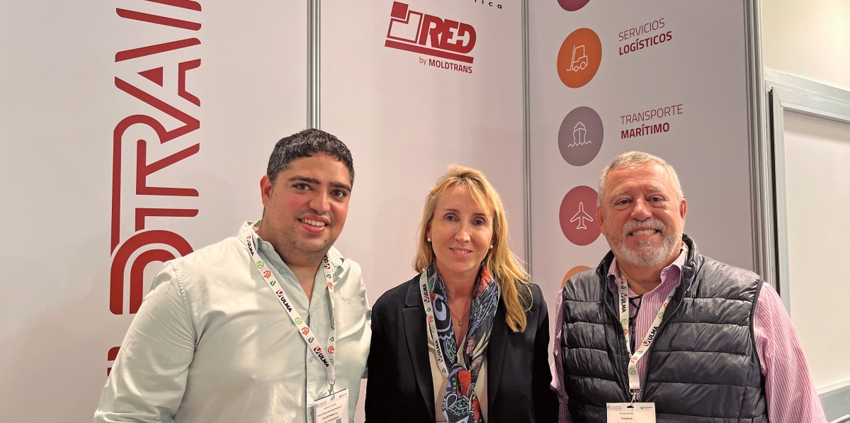 Moldstock, perteneciente a Grupo Moldtrans, está presente en Logistics para mostrar su oferta logística, basada en logística interna, de almacenamiento, de comercio electrónico, cross-docking, preparación y embalaje de pedidos, consultoría logística, logística inversa, logística especializada para el sector TI, gestión de inventario y control de existencias. En la imagen, Alejandro Moldes, María Giné y Carlos Moldes