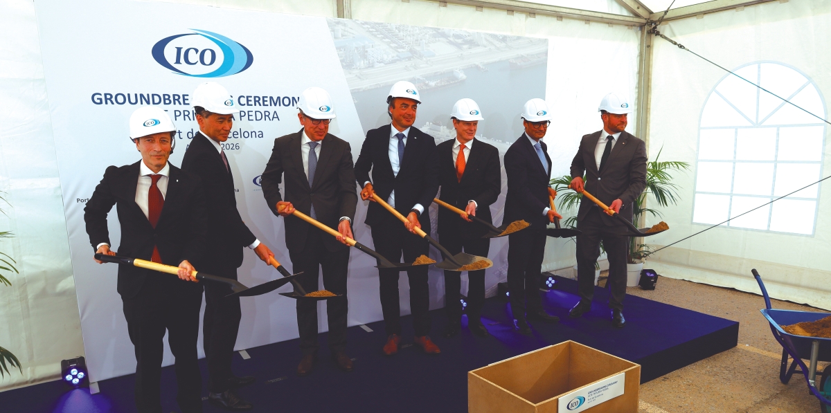 De izquierda a derecha: Albert Pallarés (ICO Spain), Takayuki Konishi (NYK), José Alberto Carbonell (Port de Barcelona), Jurgen Vanhouen (ICO), Ricard Beyer (ICO), Àlex Garcia (Port de Barcelona), Andrew Terry (NYK). Foto J. M.