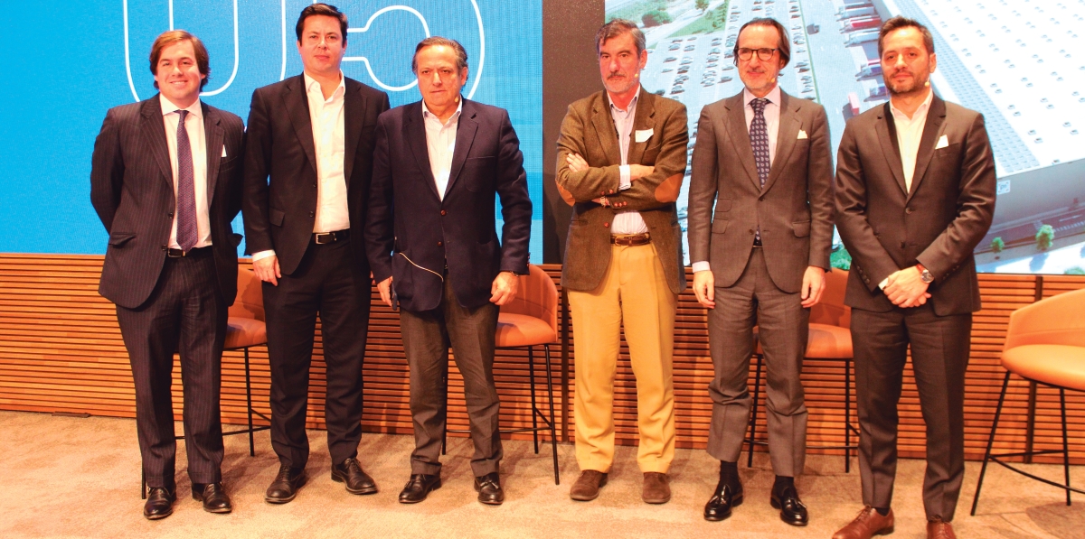 Luis Poch, Business Development Manager P3; David Oliva, de CBRE; Juan Pablo Lázaro, director de Colaboraciones Estratégicas de Inpost; Javier Giovanetti, director Inmobiliario Iberia, InmoSTEF; Francisco Aranda, presidente de UNO; y Javier Merída, director General de P3 en España. Foto M.V.