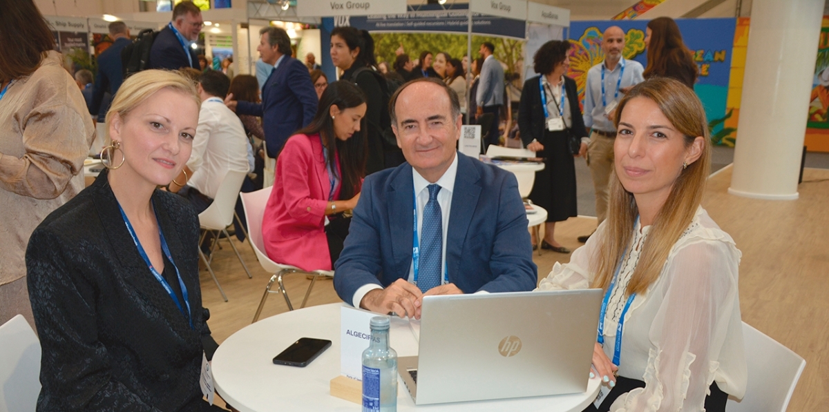 La APBA ha estado presente en Seatradce Europe para promocionar los puertos de Algeciras y Tarifa, así como las instalaciones portuarias de La Línea (Alcaidesa Marina) como localizaciones de escala. La delegación mantuvo diversos encuentros de trabajo con navieras que ya mostraron su interés en escalar con cruceros de lujo en la comarca, no solo por su ubicación privilegiada en el Estrecho, sino por una oferta singular aún para descubrir. En la imagen, Marta Rodríguez (Noatum Maritime Cruise Services), Gerardo Landaluce (presidente de la APBA) y Cristina Recio (APBA). Foto J.C.P.
