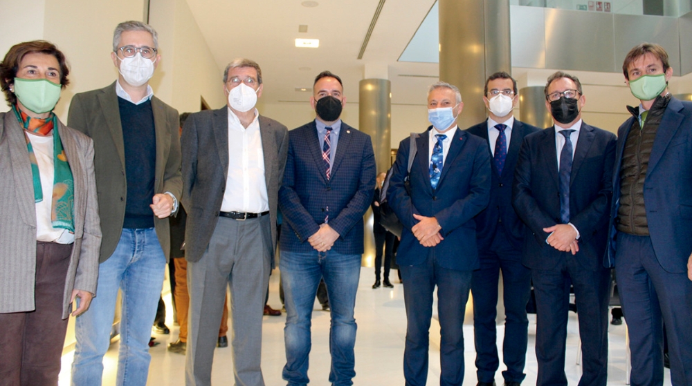Ángeles Santamaría, CEO de Iberdrola España; Arcadi España, conseller de Política Territorial, Obras Públicas y Movilidad de la Generalitat Valenciana; Aurelio Martinez, presidente de la APV; Rafa Simó, presidente de PortCastelló; Francisco Toledo, presidente de Puertos del Estado; José María Gómez, director del puerto de Castellón; Carlos Eleno, director de la Autoridad Portuaria de Alicante; e Iván Molina, delegado de Iberdrola en la Comunitat Valenciana. Foto: Raúl Tárrega. Papel proactivo