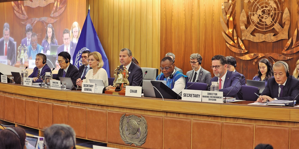 El secretario general de la OMI, el panameño Arsenio Domínguez (centro), valora el encuentro como un punto de inflexión trascendental.