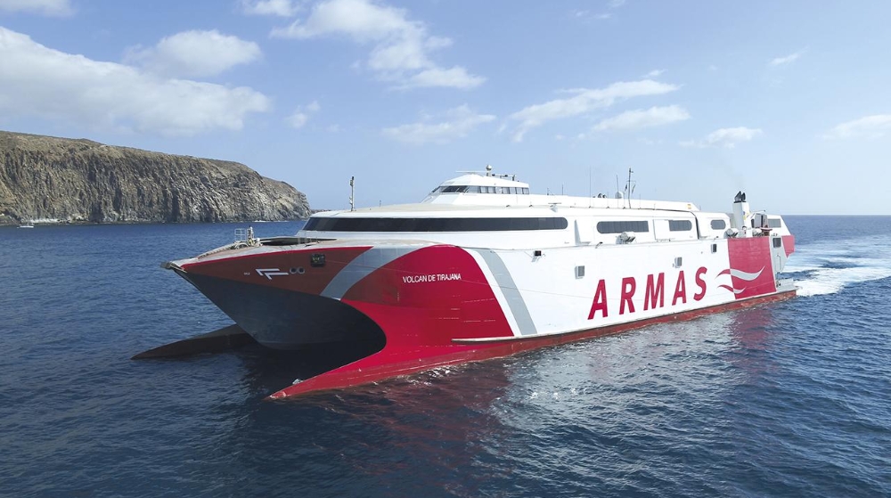 El fast ferry “Villa de Agaete” tiene capacidad para 868 pasajeros, 220 vehículos y mantiene una velocidad de 34 nudos.