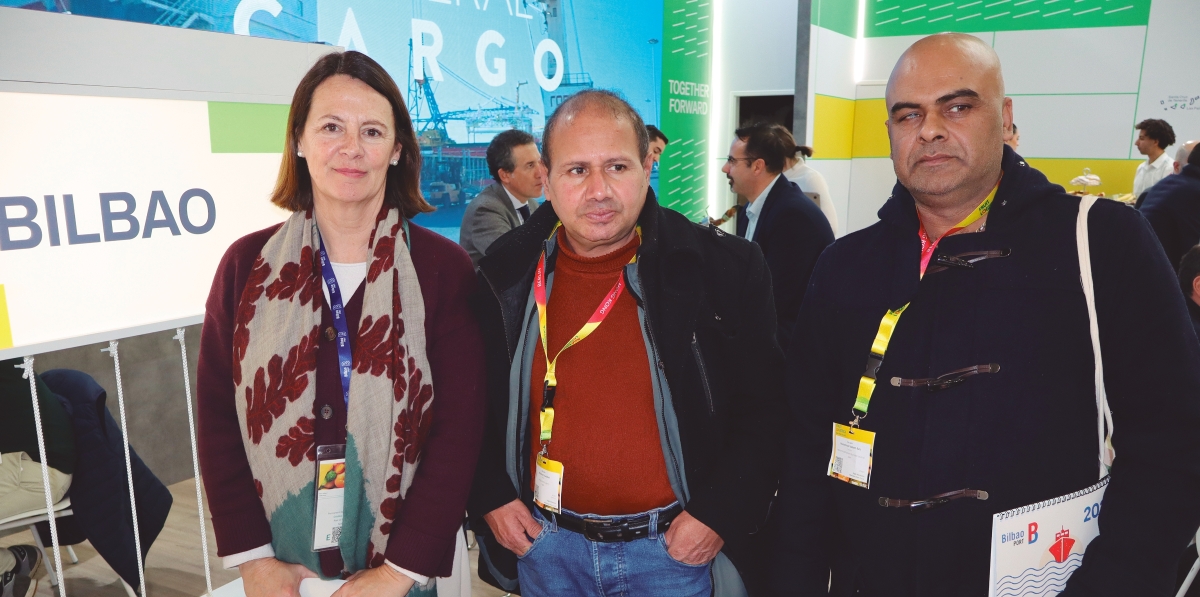Cristina Ardeo, del Departamento Comercial de la Autoridad Portuaria de Bilbao, con los representantes de una compañía de India interesada en los servicios del Puerto de Bilbao. Foto J.P,