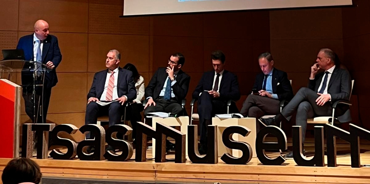 Davide Falteri, representante de la región de Liguria y presidente de Federlogistica (Federación Italiana de Empresas de Logística), presentó el Encuentro con la participación del presidente de la Autoridad Portuaria de Bilbao, Iván Jimenez (segundo por la derecha), y representantes de la delegación ligur.