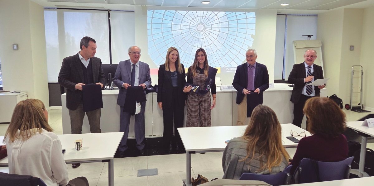 Arriba, entrega de diplomas de la 14º promoción. A la derecha, Gustavo Santana, presidente de OPPE, flanqueado por Fernando González Laxe (Universidad de A Coruña) y Manuel Arcila Garrido (Universidad de Cádiz). Fotos OPPE.