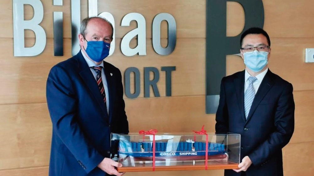 Wan Kun, managing director de COSCO Shipping Lines Spain, obsequió al presidente de la AP de Bilbao, Ricardo Barkala, con la maqueta de un buque. En la visita participaron el managing director de COSCO, Wan Kun; el general manager, Albert Oñate; el director de Vasco Shipping, Mikel Urrutia; y el CEO de VASCO, Jon Azarloza. Por parte de la Autoridad Portuaria, fueron recibidos por su presidente, Ricardo Barkala; el director, Carlos Alzaga; y el director de Operaciones, Comercial y Logística, Andima Ormaetxe.