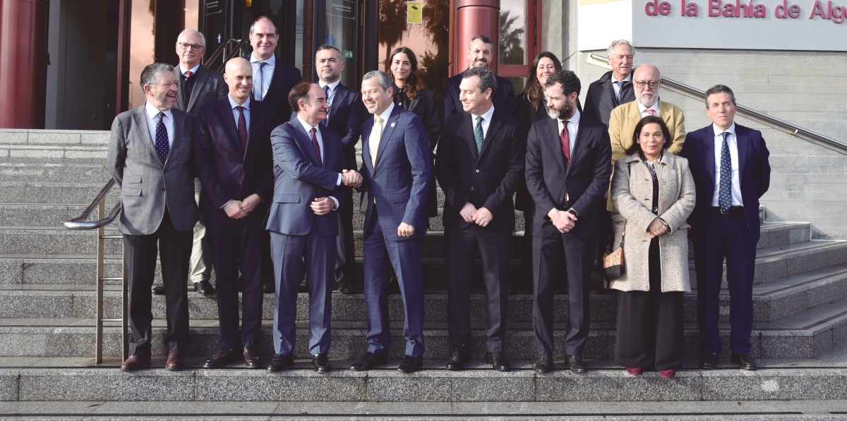 Reunión ayer en Algeciras del secretario general de la OMI, Arsenio Domínguez, con los representantes marítimos y portuarios de España.