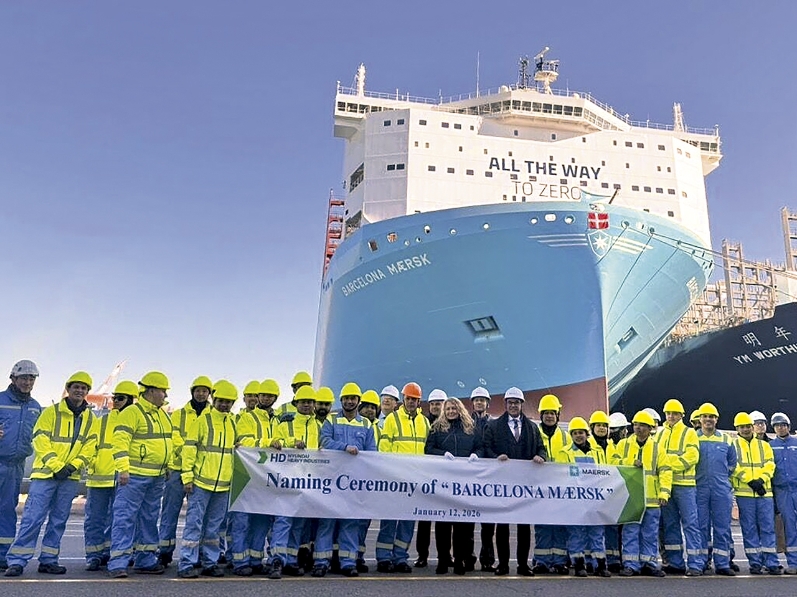 ULSAN. El “Barcelona Maersk” ha sido construido en colaboración con HD Hyundai Heavy Industries y Everlience y su ceremonia de nombramiento se celebró en Ulsan.