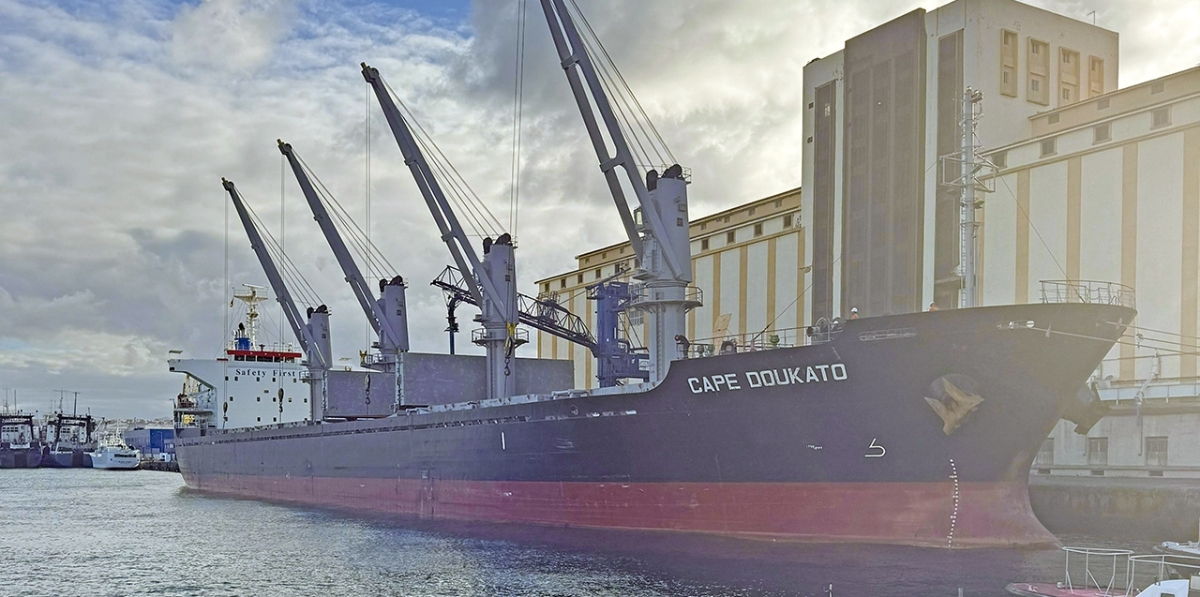 LAS PALMAS DE GRAN CANARIA. La descarga del “Cape Doukato”, realizada con tecnología de última generación, supone un nuevo hito en la consolidación del Puerto de Las Palmas como plataforma clave para la entrada y distribución de cereales en Canarias.