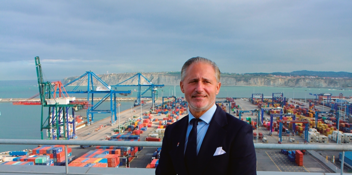 Iván Jiménez, presidente de la AP de Bilbao, este lunes, con CSP Iberian Bilbao Terminal al fondo. Foto J.P.