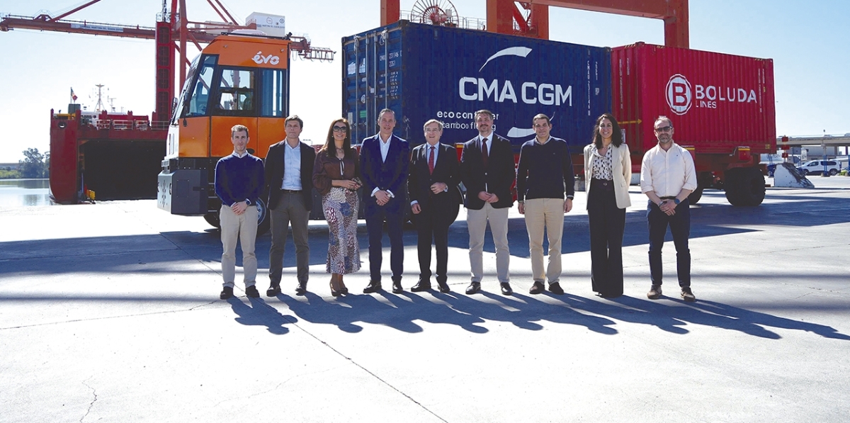 SEVILLA. La terminal de contenedores del Puerto de Sevilla, gestionada por Boluda Corporación Marítima y CMA – CGM, ha acogido las pruebas de una cabeza tractora impulsada con hidrógeno. El H2Tractor, diseñado y fabricado íntegramente por la empresa EVO, favorece el transporte sostenible en entornos logísticos y contribuye a la descarbonización de los puertos.