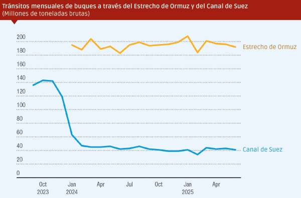 A ello se suman tensiones en el Estrecho de Ormuz, por donde transitan más de un tercio de las exportaciones mundiales de petróleo por vía marítima, y una situación de inestabilidad en el Mar Negro. Estos cuellos de botella han puesto en evidencia la vulnerabilidad de las cadenas de suministro globales, generando aumentos y fluctuaciones pronunciadas en las tarifas de fletes, retrasos en la entrega de mercancías y una redistribución geoeconómica de las rutas de comercio.