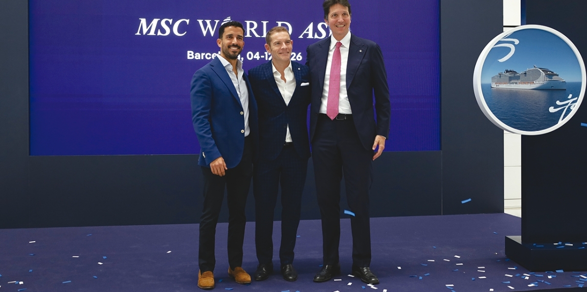 El director de Innovación de Experiencia del Cliente de MSC Cruises, Will Monts de Oca, el director general de MSC Cruceros en España, Fernando Pacheco, y el vicepresidente de Ventas para el sur de Europa de MSC Cruises, Leonardo Massa. Foto: J. M.