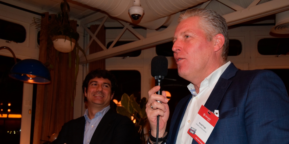 Abrieron el evento Patricio Erhardt, CEO de la compañía, y Ronald Twigt, director general de Erhardt Shipping Services, con un mensaje cargado de agradecimiento. “Quiero hablar de lo que puede ser el año que viene”, arrancó Erhardt, “pero sobre todo dar las gracias por vuestra confianza: clientes, proveedores, colaboradores... todos sois parte de nuestra gran familia”. Subrayó que la esencia del grupo no reside en infraestructuras ni procesos, sino en las personas: “Somos una empresa de personas y vuestra colaboración es fundamental para crecer todos juntos y daros el servicio que necesitáis y que queremos que sea el mejor del mundo”.