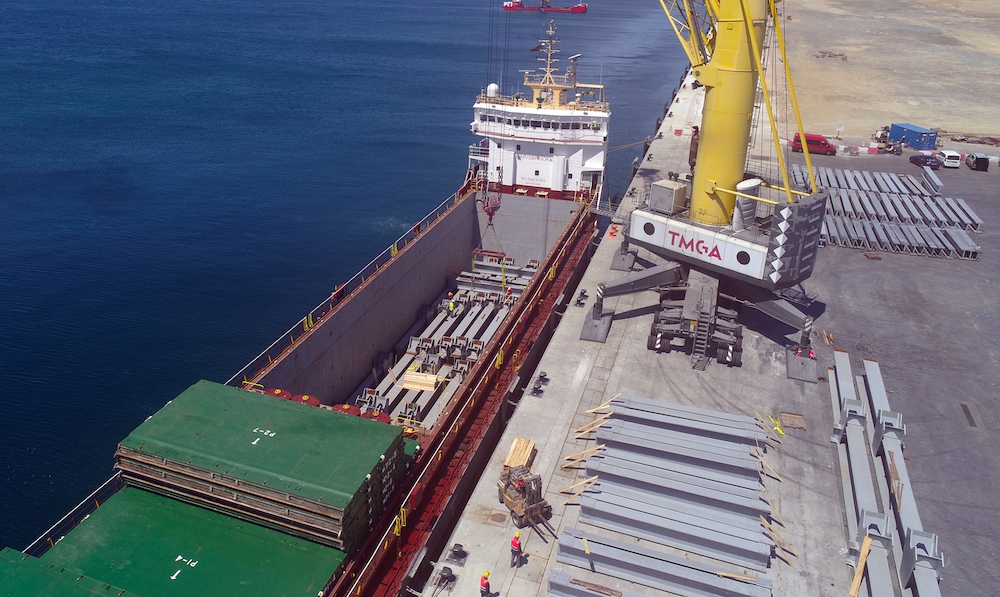 La operativa de transporte, estiba y fletamento ha sido íntegramente diseñada y coordinada por los equipos de ingeniería del transporte y fletamentos de Erhardt Proyectos. La estiba y trincaje de la carga se ha realizado en la terminal portuaria que Erhardt tiene en el puerto exterior de A Coruña, a través de su participada TMGA – Terminales Marítimos de Galicia. La estructura metálica ha sido cargada con destino Constanza en el buque de KATE C de 106 metros de eslora.