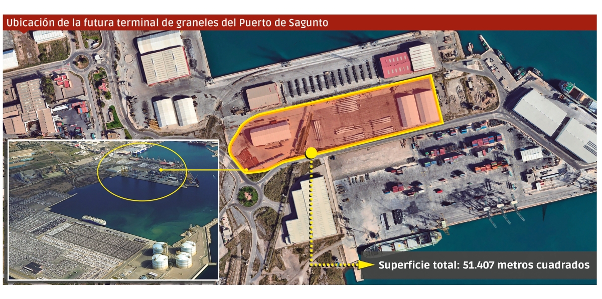 Ubicación de la futura terminal de graneles del Puerto de Sagunto.