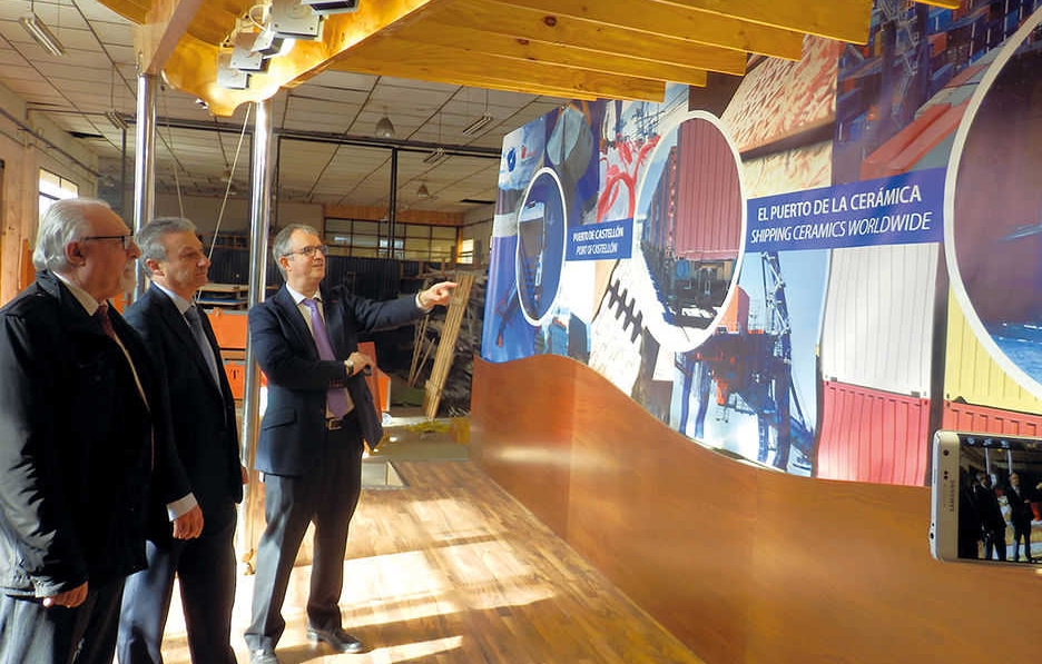 La APC aprovechará el salón internacional para dar a conocer su oferta de infraestructuras y servicios y mostrará los beneficios de operar desde este enclave. Hay que recordar que desde el Puerto de Castellón sale el 46% de la cerámica de la provincia y se importa alrededor del 90% de las materias primas. Por ello, la APC ha impulsado para este año bonificaciones dirigidas al sector cerámico, de manera que las tasas de los buques se rebajan desde un 25 hasta un 40% de forma progresiva en base al número de contenedores que se muevan. "Una medida que impulsará la competitividad de nuestro puerto y mejora las condiciones del sector", señala el presidente de la Autoridad Portuaria, Francisco Toledo. Además, PortCastelló llega a esta nueva edición ferial con cifras récords en tráfico de mercancías en 2015, al superarse los 16 millones de toneladas.El presidente de la Autoridad Portuaria de Castellón, junto al director del puerto, Roberto Arzo, y el presidente de la Fundación PortCastelló, Miguel Rojo, han visitado el nuevo stand que PortCastelló instalará en Cevisama antes de su montaje definitivo. El stand muestra todo el proceso relacionado con la cerámica, desde su fabricación hasta la exportación final.