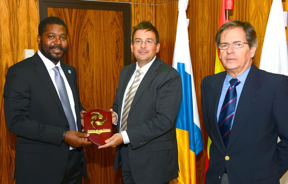 El presidente de la Autoridad Portuaria de Las Palmas, Luis Ibarra, acompañado del gerente de la Fundación Puertos de Las Palmas, Sergio Galván, recibió ayer al director general de Puertos de Guinea Ecuatorial, Alberto Nguema Lima y a una delegación que lo acompaña, con el objeto de mantener una serie de encuentros con el sector portuario local.