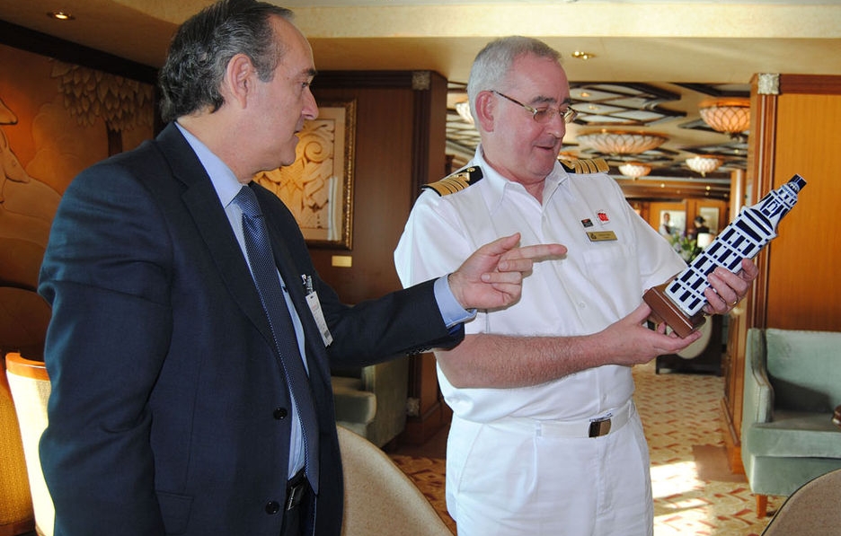 El presidente de la AP de A Coruña, Enrique Losada, visitó ayer el "Queen Elizabeth" con motivo del 175 aniversario de la naviera Cunard, propietaria del buque. Losada fue recibido por su capitán, a quien obsequió con una figura de la Torre de Hércules, faro y símbolo de la ciudad. En 2015 son un total de cuatro las escalas programadas por Cunard, que incluyen la visita ya realizada por el "Queen Victoria", que volverá el 28 de noviembre, y el atraque de ayer del "Queen Elizabeth", que hará su segunda escala el 20 de diciembre.