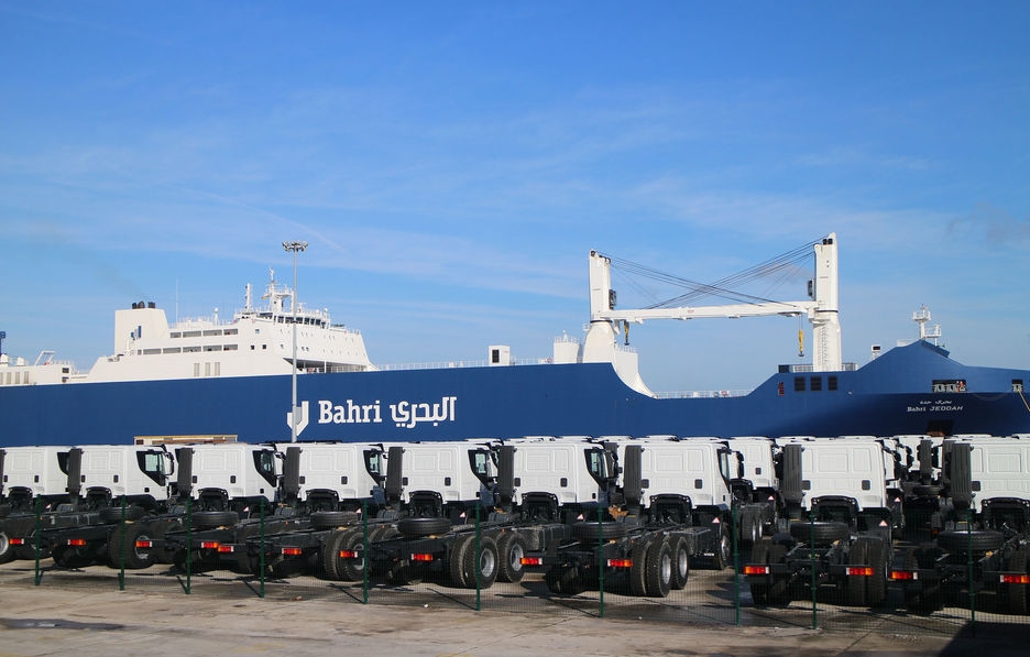 Alrededor de las 10.15 horas del pasado sábado, el "Bahri Jeddah", un buque con-ro de 225 metros de eslora y 26.000 tpm, construido en 2013, atracaba en el muelle A-2 de la ampliación del Puerto de Bilbao para embarcar 115 cabezas tractoras Trakker 380 de Iveco con destino a Dubai, en la que suponía su primera visita al puerto vizcaíno, elegido como escala regular en la nueva línea regular Europa-Middle East que la compañía saudí ha inaugurado en el marco de su estrategia de expansión como respuesta al incremento de la demanda observado en la región.La rotación de esta primera línea regular de Bahri entre ambas áreas geográficas incluye en Europa los puertos de Tilbury (Reino Unido), Bremerhaven (Alemania), Amberes (Bélgica) y Bilbao, antes de atravesar el Canal de Suez (Port Said, Egipto) para recalar en Jeddah y Dammam (Arabia Saudí), con escalas en Hamburgo (Alemania), Jebel Ali (Dubai), Aqaba Port (Jordania), Port Suez (Egipto) y Djibuti, en función de la demanda. El tiempo de tránsito entre Bilbao y Jeddah está estimado en unos 14 días.