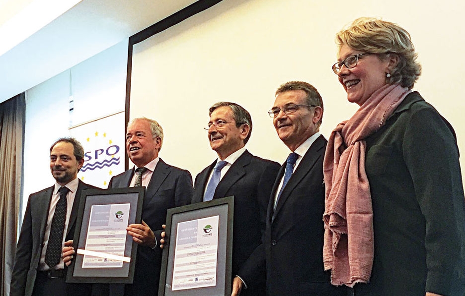 Cada año la ESPO entrega este certificado a los puertos que cumplen con los estándares y requisitos establecidos en Ecoports, la plataforma web a través de la cual la ESPO asesora a los puertos que quieren reducir el impacto medioambiental en sus actividades. En esta edición también ha reconocido la gestión de los puertos de Rotterdam (Holanda), Lorient (Francia) y Piombino (Italia). El director general de la APV, Ramón Gómez-Ferrer, recibió de manos de Isabelle Ryckbost, secretaria general de ESPO, la renovación del certificado PERS por dos años, que acredita, por cuarta vez, la sostenibilidad, eficiencia y defensa del medioambiente en las terminales valencianas. Durante la entrega Ryckbost, felicitó a los puertos por este importante logro. "Estamos encantados con el creciente interés que están demostrando las autoridades portuarias europeas por el certificado PERS", añadió.