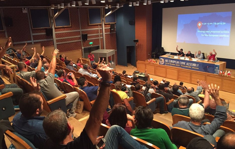 Un centenar de delegados en representación de los sindicatos de estibadores de Grecia, Chipre, Malta, el Reino Unido, Escocia, Suecia, Dinamarca, Francia, Noruega, Bélgica, España y Portugal se reunieron en Salónica (Grecia) el viernes durante la Asamblea de la Zona Europea de IDC.Los delegados discutieron las consecuencias que la política europea está teniendo en los trabajadores de Europa. La asamblea acordó que "la orientación ultra liberal de Europa y los planes de austeridad impuestos a los estados miembros están teniendo un impacto negativo en todos los países. Las personas sufren, la inseguridad ha aumentado y las condiciones de trabajo se han deteriorado", asegura IDC.