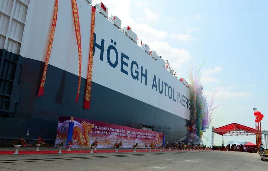 El pasado jueves fue bautizado en los astilleros chinos de Xiamen Shipping Industries el segundo ro-ro de la serie “New Horizon” de Hoegh Autoliners, que llevará el nombre de “Hoegh Trigger”. Al igual que su gemelo, el “Hoegh Target”, tiene 199,9 metros de eslora y capacidad para 8.500 CEUs (car equivalent unit).