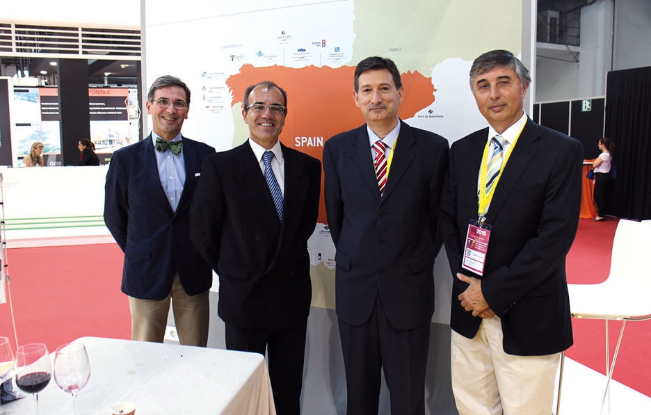 El sistema portuario de titularidad estatal se presentó en el Salón Internacional de la Logística y la Manutención de Barcelona con una oferta inigualable, extensa superficie de depósito y almacenaje, 37.300.000 metros cuadrados en los que se pueden realizar todo tipo de actividades de valor añadido. 25 autoridades portuarias, de las cuales 14 lo hicieron con la cobertura del Grupo Fomento, ofrecieron sus infraestructuras y servicios en el SIL. En la imagen, representantes de la AP's de Sevilla, Cartagena, Alicante y Las Palmas.