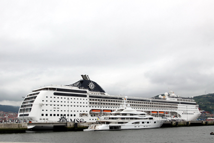 El pasado martes coincidieron en la terminal de cruceros de Puerto de Bilbao, en Getxo, el crucero “MSC Ópera” y el yate “Valeríe”, ofreciendo un bello contraste de esloras. El “MSC Ópera” llevó a cabo el embarque y desembarque de pasajeros en el que era el segundo atraque del total de ocho que tiene previsto realizar este año en el puerto bilbaíno. Por su parte, el yate “Valeríe”, está catalagodo internacionalmente, tanto por su tamaño como por sus prestaciones de lujo, como un “superyate”. De hecho, se encuentra en las lista de los 100 yates más exclusivos del mundo. El “MSC Ópera” atracó en el Puerto de Bilbao el pasado martes a las 8:00 horas y partió a las 17:00 horas del citado día, mientras que que el yate “Valeríe” llegó el sábado a las 16:00 horas y aunque tenía previsto zarpar hacia su próximo en el día de ayer, finalmente solicitó permiso a la Autoridad Portuaria para permanecer atracado hasta la tarde del día de hoy.