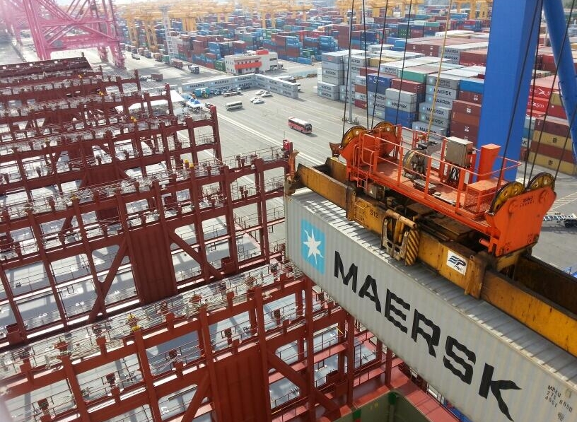 Primer contenedor en la cubierta del "Maersk Mc-Kinney Moller"