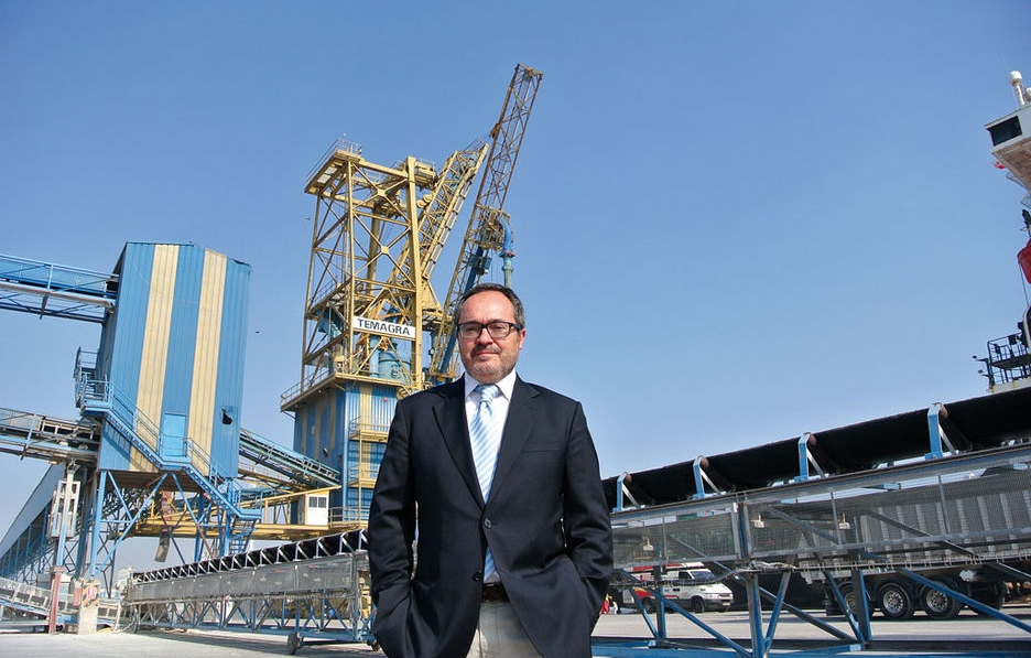 Temagra cerró el año 2012 "manteniendo los tráficos", afirma a este Diario, Vicente Urquijo, director general de Temagra, " esperemos que este año podamos seguir creciendo. Nuestras previsiones para 2013 son superar las 1,2 millones de toneladas". Para lograrlo, la compañía apuesta por diversificar los tráficos nuevos hacia, por ejemplo, la carga de minerales. Por supuesto, se mantienen los tráficos agroalimentarios, "aunque es cierto que estos tráficos han bajado mucho en los últimos dos o tres años".La llegada de los nuevos tráficos, los mencionados minerales, "dio lugar a la adquisición de la cinta ecológica, de grandes dimensiones, para la carga de buques de gran tonelaje. El rendimiento máximo es de 1.000 toneladas por hora", detalla el director general. Y lo más destacable, además de su coste, cerca de dos millones de euros, es que es totalmente ecológica. Eso significa que, desde que llega el camión a la terminal y comienza la recepción, el producto se manipula en un circuito totalmente cerrado. Cuando se ha de introducir en la bodega de un gran buque, la manga telescópica, dotada de filtros de aspiración, facilita que el volcado no emita ningún polvo ni residuo a la atmósfera. "Se pueden cargar con facilidad barcos de hasta 30.000 toneladas", subraya Urquijo. Sobre la incorporación de esta cinta a finales de 2012, el director general comenta que ha supuesto un gran esfuerzo (cerca de dos millones de euros de inversión) "pero -insiste- lo que pretendemos con ello es la búsqueda de tráficos nuevos".