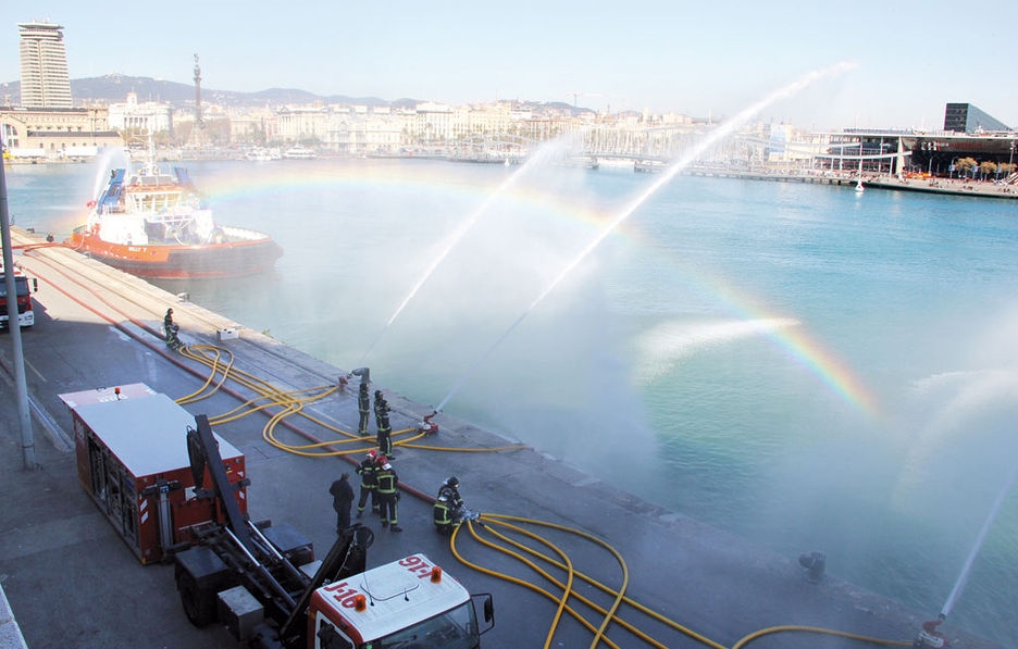 Los Remolcadores y los Bomberos de Barcelona realizaron la pasada semana un ejercicio práctico conjunto en el recinto portuario catalán, una operativa enmarcada en el II Workshop sobre intervención operativa en riesgos tecnológicos celebrado en Barcelona.