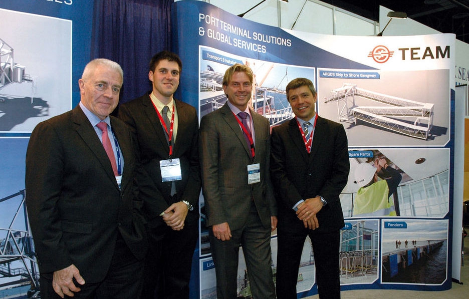 La pasarela Argos presenta un nuevo sistema que garantiza el embarque y desembarque de pasajeros totalmente seguros. Con el uso de esta pasarela, los puertos que no cuenten con estación marítima pueden garantizar que cumple con la norma europea relativa a la necesidad de que las personas con movilidad reducida puedan acceder fácilmente a un buque.La compañía ha mantenido diferentes reuniones en Miami que arrojan un balance satisfactorio. Además de su nueva pasarela Argos, el equipo de Team desplazado en Miami ha presentado también otras infraestructuras y servicios que desarrolla la compañía, como rampas ro-ro, servicios de mantenimiento, carritos para el transporte de maleta, etcétera.