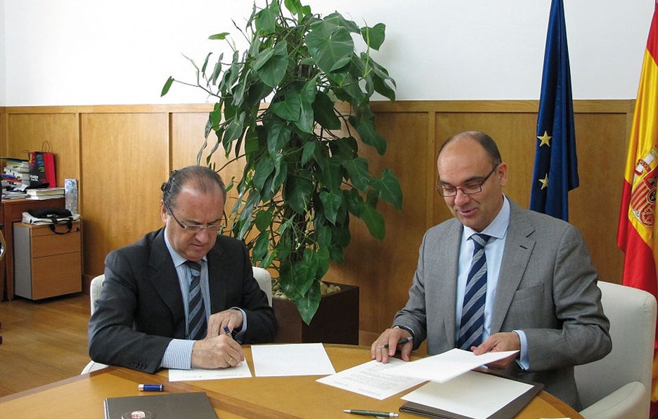 El presidente de la Fundación Puerto Alicante, Joaquín Ripoll, y el rector de la Universidad de Alicante, Manuel Palomar, firmaron ayer un convenio de colaboración entre ambas instituciones, centrado en las titulaciones propias del Instituto de Economía Internacional (IEI) de la Universidad de Alicante, y más concretamente del Máster en Comercio Internacional. Al amparo del presente convenio los alumnos de dicho máster podrán realizar prácticas profesionales en el ámbito portuario, así como incorporarse una vez finalizados sus estudios a la bolsa de trabajo de la Fundación Puerto Alicante. Junto a los máximos representantes también asistieron a la reunión la vicerrectora de Estudios, Formación y Calidad, Cecilia Gómez, y la directora del Máster y secretaria del IEI, Gloria Pardo.
