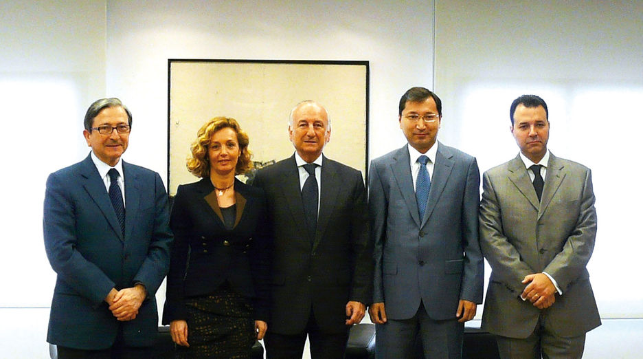 En el transcurso del encuentro, la APV ha explicado los aspectos más relevantes de las instalaciones gestionadas por la APV en sus puertos a los representantes de la República de Kazajstán, y éstos se han mostrado muy interesados en conocer, tanto algunas de las incitativas más relevantes que la APV desarrolla en la actualidad en diversos campos, como la Seguridad, Logística, Proyectos de Cooperación Internacional, Formación y Medio Ambiente, como en sus planes de futuro. El encuentro, se ha complatado con una visita por mar a las instalaciones más importantes del Puerto de Valencia. En la fotografía superior, de izquierda a derecha: Ramón Gómez-Ferrer, Director General de la APV, Mar Casanova, Directora General de Internacionalización de la Generalidad Valenciana, Rafael Aznar, Presidente de la APV, Bakyt Dyussenbayev, Embajador de la República de Kazajstán en España y Juan Francisco Coronatti, Presidente de CISA-KAZESP, S.L.