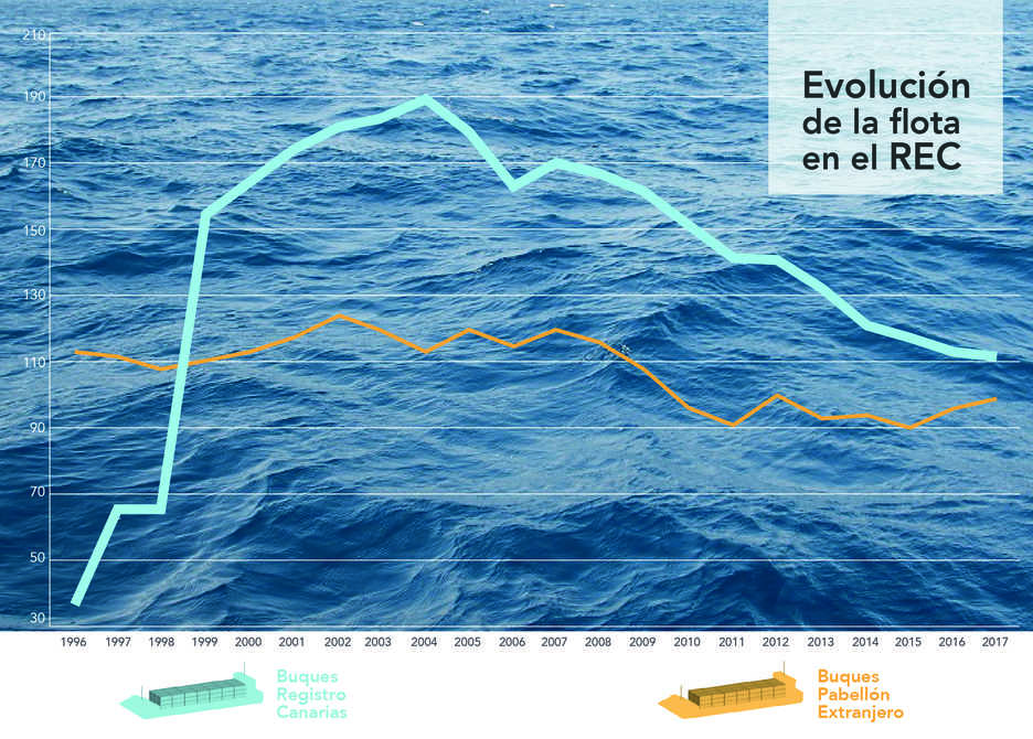 Desde 2004, el número de buques registrados en el REC ha ido disminuyendo hasta llegar a los 112 buques registrados actualmente. Esto supone una caída del 41% en buques registrados. El crecimiento de años anteriores, además, coincide con la desaparición progresiva del registro nacional y el trasvase de buques al canario. En los últimos cuatro años, el REC ha perdido 20 buques y ha visto reducido el tonelaje un 10,6%, pasando de 2,49 a 2,23 millones de toneladas.