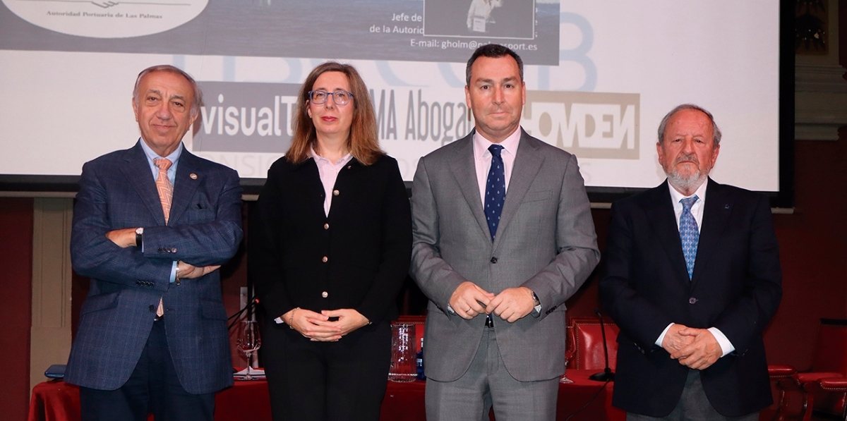 De izquierda a derecha, Clara Lazcano, subdirectora de Seguridad Marítima de la Dirección General de la Marina Mercante; Gustavo Santana, presidente del Organismo Público Puertos del Estado (OPPE); y Julio Carrasco, presidente de ASECOB. Foto M.J.