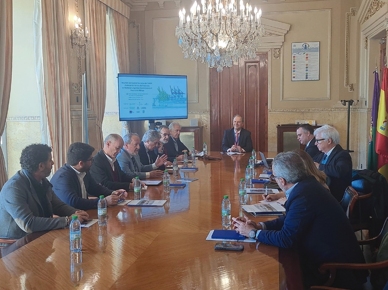 El presidente de la Autoridad Portuaria, Carlos Rubio, dio la bienvenida en la Sala de Consejos a una veintena de representantes profesionales pertenecientes a ANESCO, ASECOB y asociaciones de los puertos portugueses de Sines, Lisboa, Douro y Leixões en un encuentro organizado por la Asociación de Consignatarios y Empresas Portuarias (ACEMAR), con la colaboración de la Autoridad Portuaria y la Fundación Málagaport.