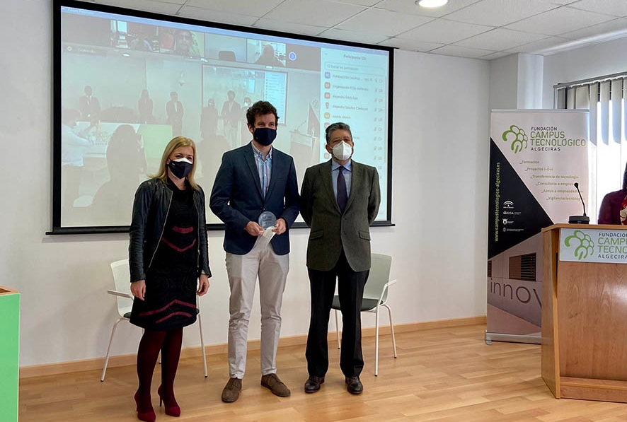 El acto de entrega ha contado con la presencia virtual de la presidenta de la Fundación y Directora General de Investigación y Transferencia del Conocimiento de la Junta de Andalucía, Teresa Serrano, y presencialmente con la subdelegada del Gobierno de la Junta de Andalucía en el Campo de Gibraltar, Eva Pajares Ruiz, el director general de la APBA, José Luis Hormaechea, la vicerrectora del Campus Bahía de Algeciras, María del Mar Cerbán, el teniente alcalde y delegado de Universidad del Ayuntamiento de Algeciras, Sergio Pelayo y el Jefe del Área de Desarrollo Tecnológico APBA, Francisco de los Santos, además de la directora de la FCTA, Rosa Rodríguez, que ha presentado la ceremonia.