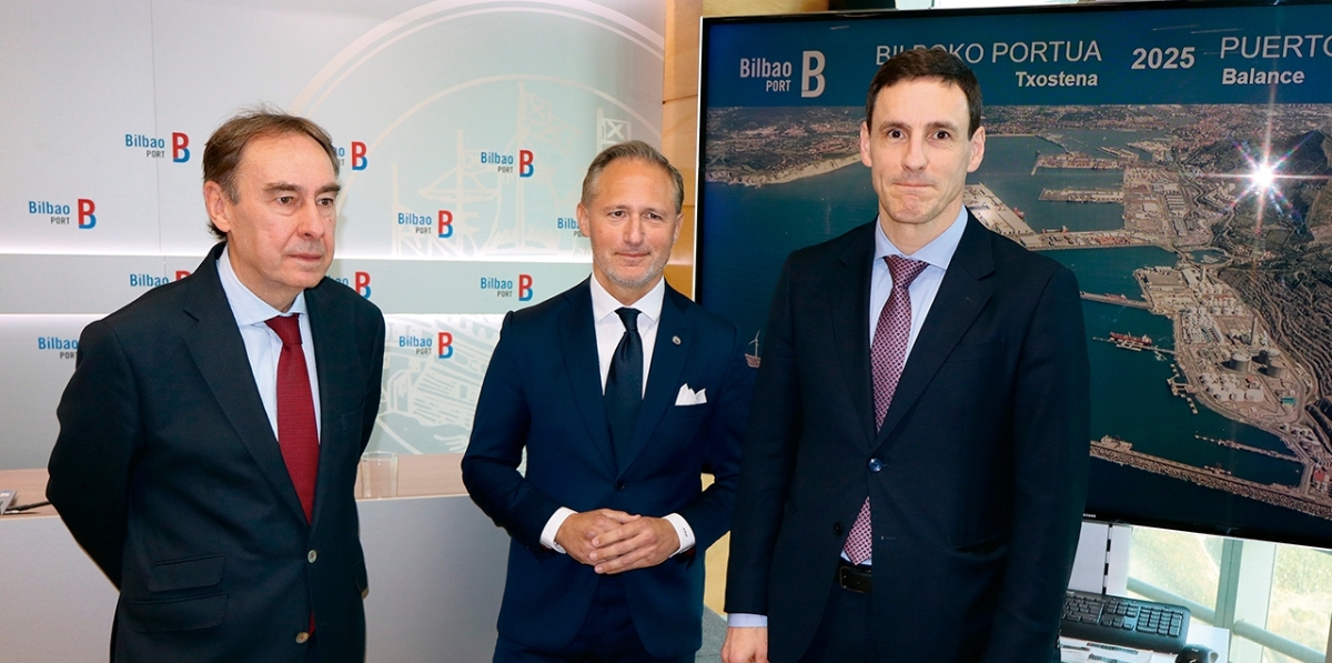 Desde la izquierda, Antonio Aiz, director de la Autoridad Portuaria de Bilbao; Iván Jiménez, presidente; y Andima Ormaetxe, director de Operaciones, Comercial y Logística. Foto J.P.