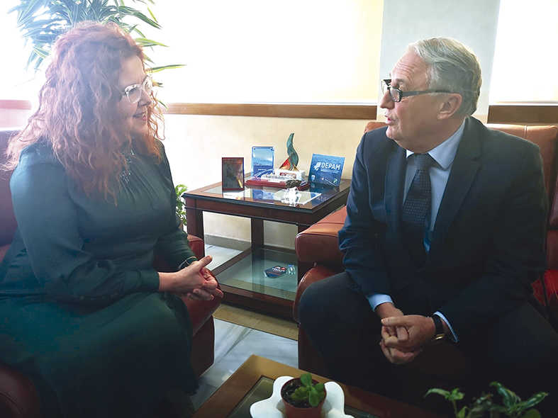 En la reunión participó también el director de la Autoridad Portuaria, Juan Manuel Reyes. Jesús Caicedo también se reunió ayer con Carmen Vidal, secretaria general del sindicato UGT Almería, en un encuentro enmarcado en la ronda de reuniones que está manteniendo el presidente con representantes de instituciones y colectivos de la provincia tras su nombramiento como presidente de la APA.